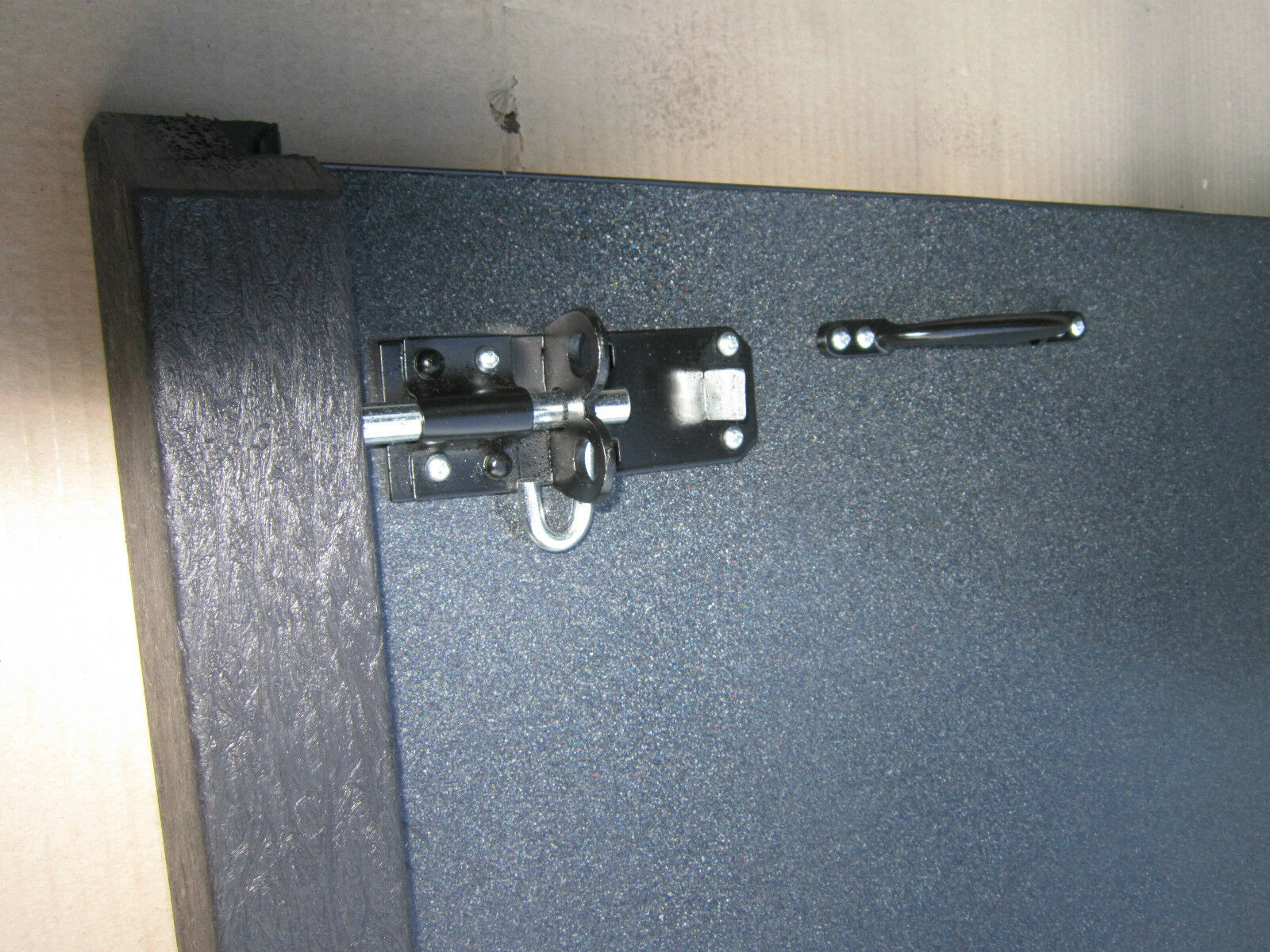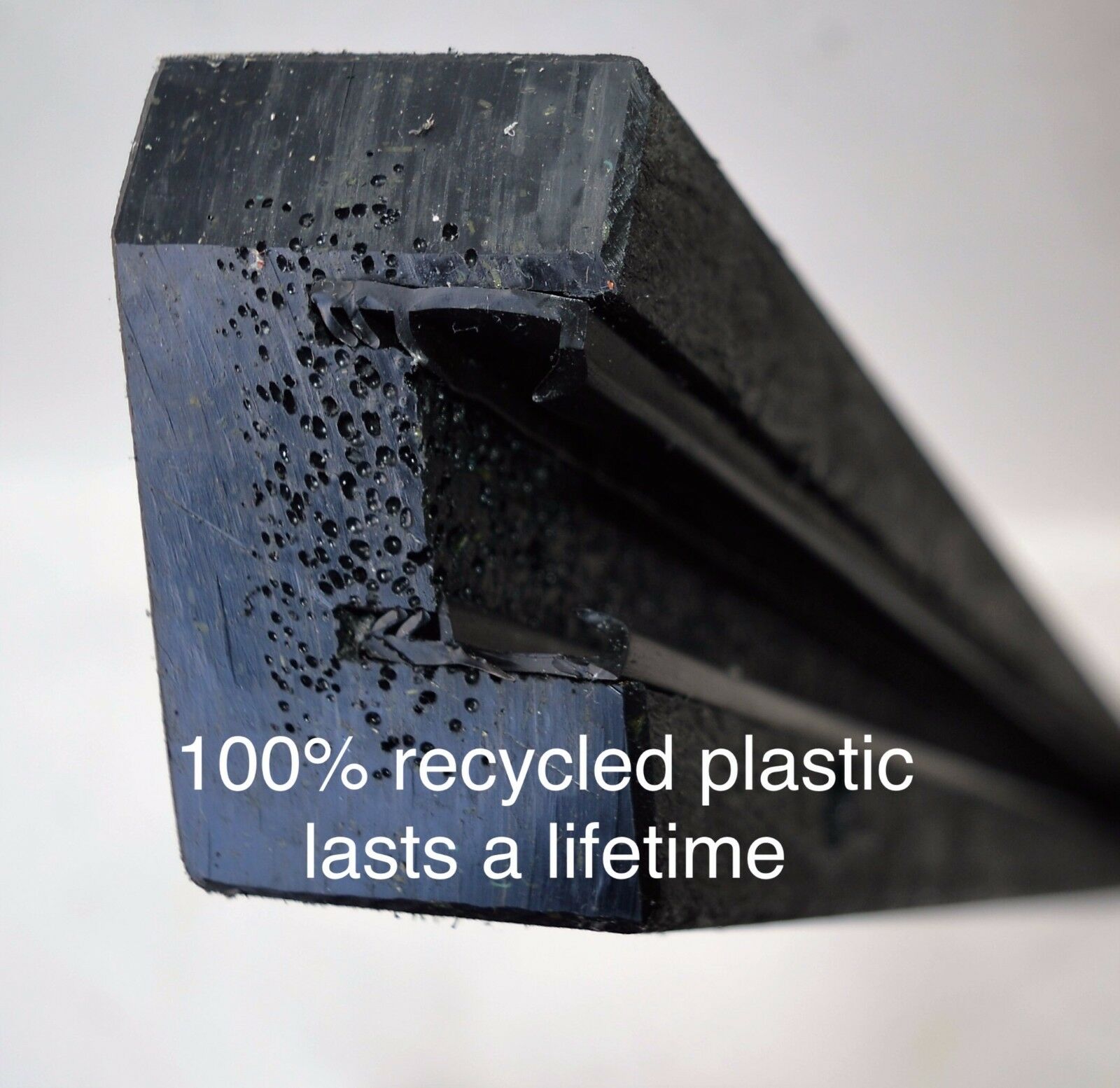 - Black plastic posts are 100% recycled plastic, the posts are 75 mm x 50 mm this fits to your door frame (or stone work). There is a grove rebated into the post,this grove has two continuous seals which seals to the front and the back of the gate, to give double protection.
